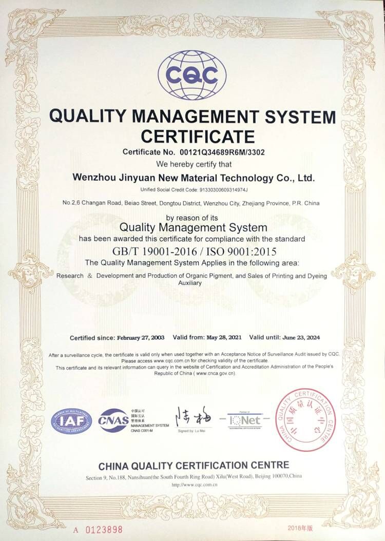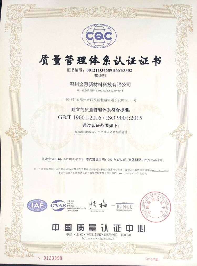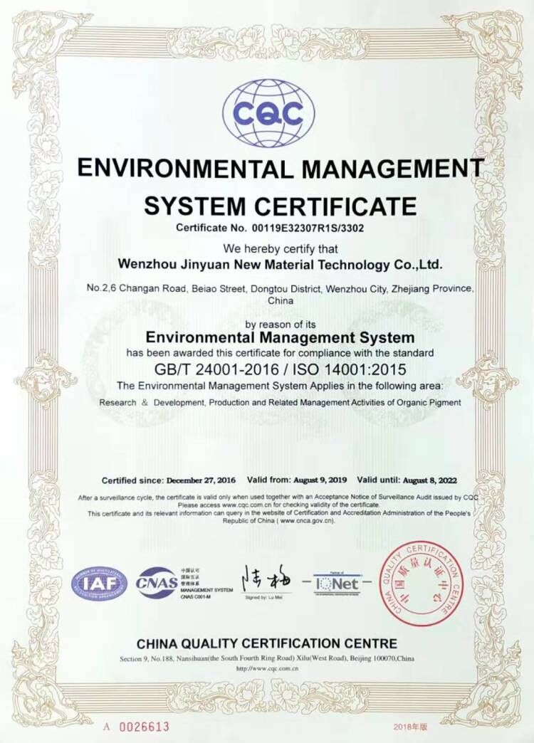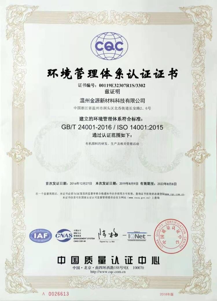公司的願景一一成爲國内品種最爲齊全的高性能有機顔料生産基地。